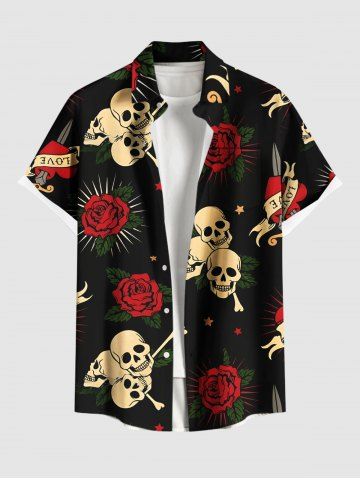 Halloween Costume Skull Rose Flower Heart Print Plus Size Matching Outfit For Couples - Black