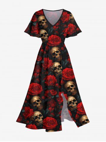 Couple Halloween Outfits > Halloween Costume Skulls Rose Flower Print Plus Size Matching Outfit For Couples