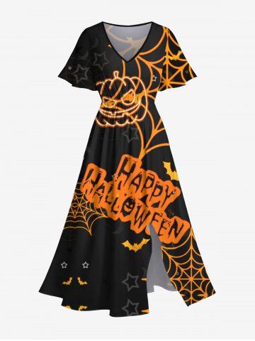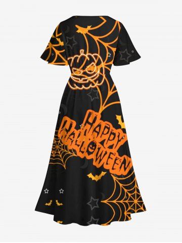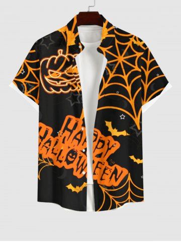 Halloween Costume Spider Web Pumpkin Bat Star Letters Print Plus Size Matching Outfit For Couples - Black