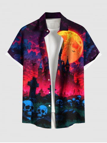Halloween Moon Castle Skulls Cross Bat Print Plus Size Matching Outfit For Couples - Red