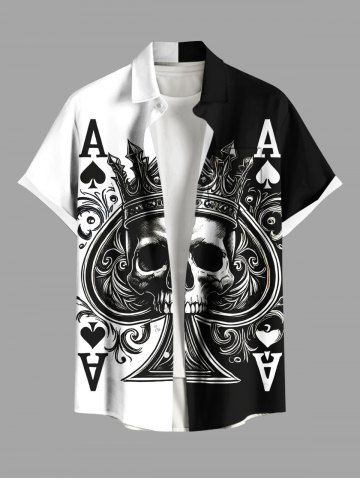 j*****e5Plus Size Halloween Poker Skull Heart Two Tone Colorblock Print Buttons Pocket Shirt For MenColor: BLACK Size: 2XLI absolutely love it!! It was everything I was expecting arrived on time.