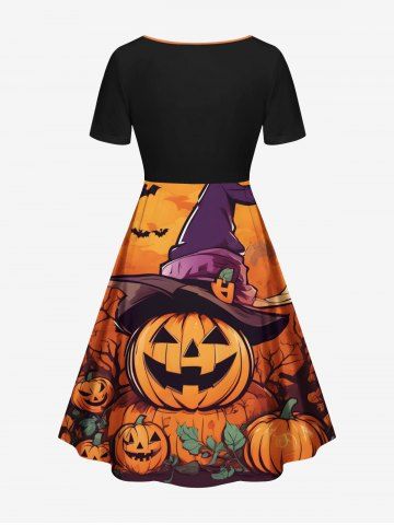 Halloween Pumpkin Bat Spider Web Print Plus Size Matching Outfit For Couples - Orange