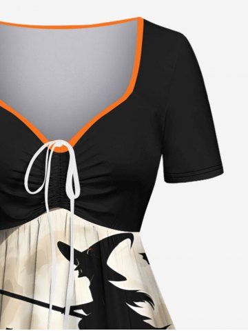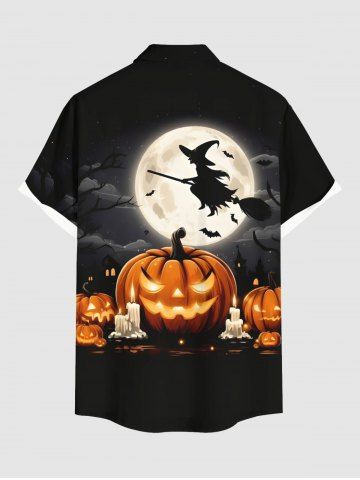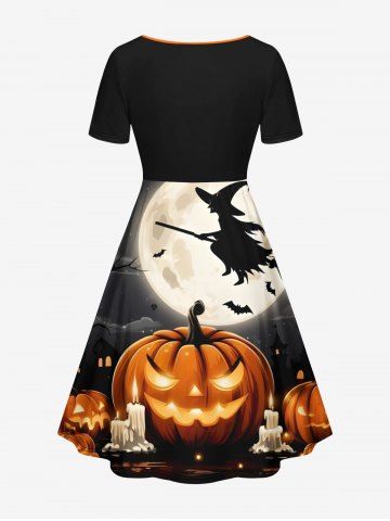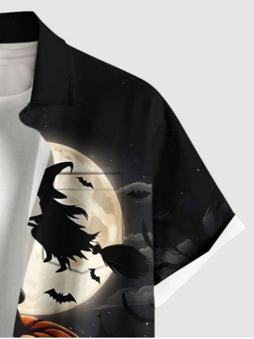 Halloween Pumpkin Candles Moon Bat Print Plus Size Matching Outfit For Couples - Black
