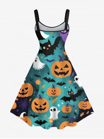 Halloween Pumpkin Ghost Bat Ombre Spider Web Print Plus Size Matching Outfit For Couples - Green