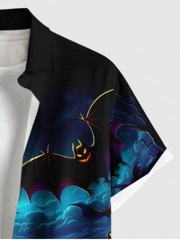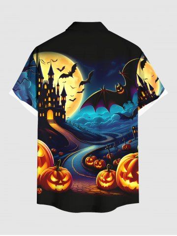 Halloween Pumpkin Lantern Bat Castle Moon Print Plus Size Matching Outfit For Couples - Black