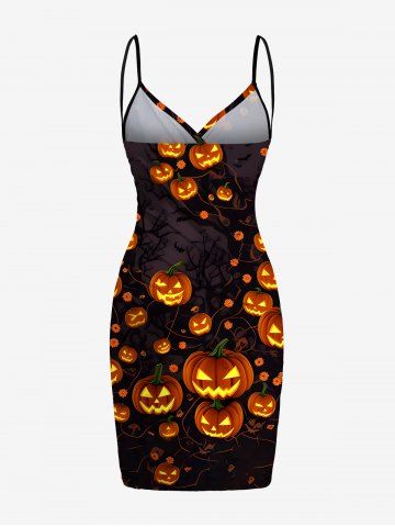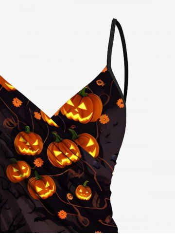 Halloween Pumpkin Lantern Branch Print Plus Size Matching Outfit For Couples - Black