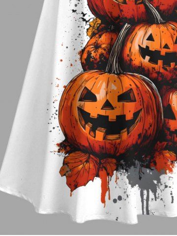 Halloween Pumpkin Leaf Paint Splatter Print Plus Size Matching Outfit For Couples - White