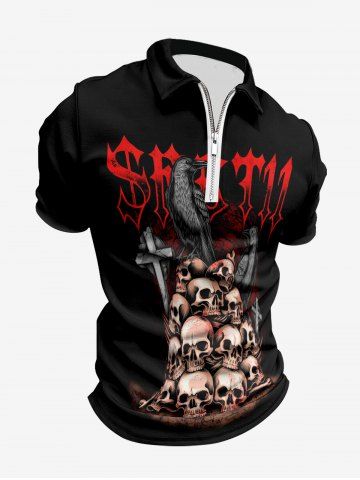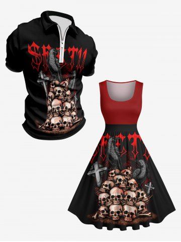 Halloween Skull Crow Cross Letters Print Plus Size Matching Outfit For Couples - Red Wine