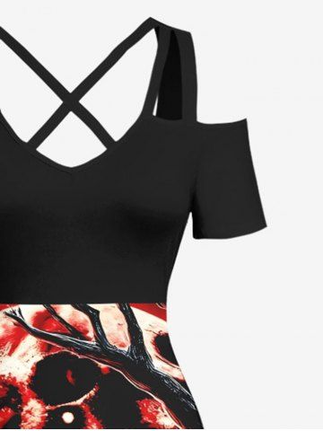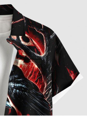 Halloween Skull Crow Tree Branch Moon Print Plus Size Matching Outfit For Couples - Black