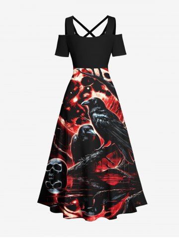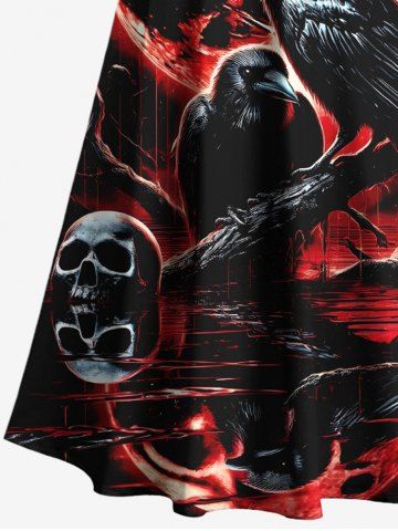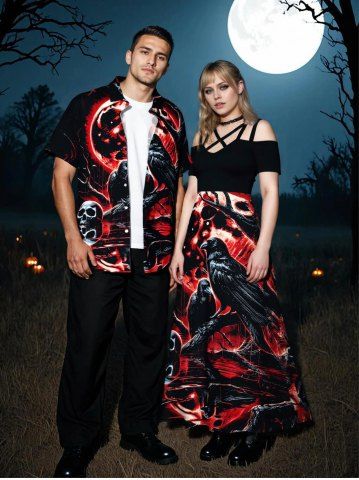Couple Halloween Outfits > Halloween Skull Crow Tree Branch Moon Print Plus Size Matching Outfit For Couples