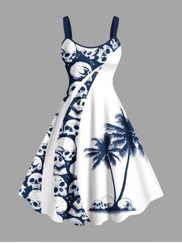 Halloween Skulls Coconut Tree Print Plus Size Matching Outfit For Couples - White