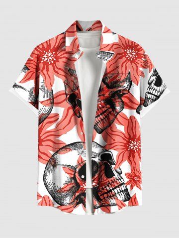 Halloween Skulls Flowers Print Plus Size Matching Outfit For Couples - Red