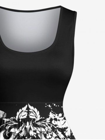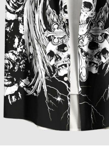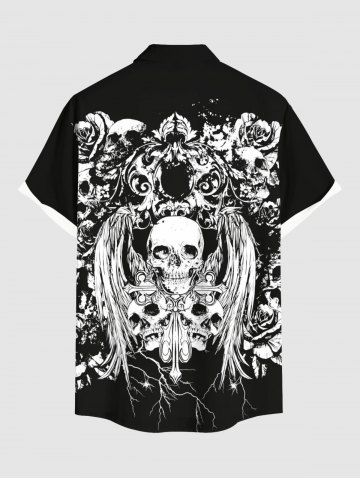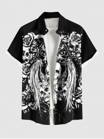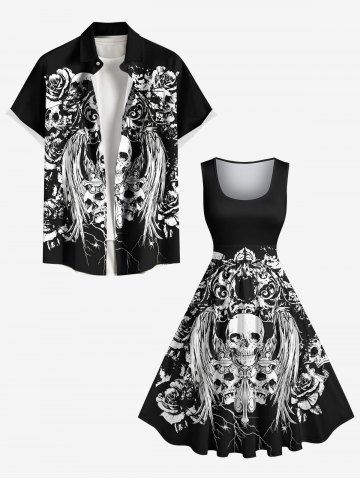 Halloween Skulls Flowers Wings Print Plus Size Matching Outfit For Couples - Black