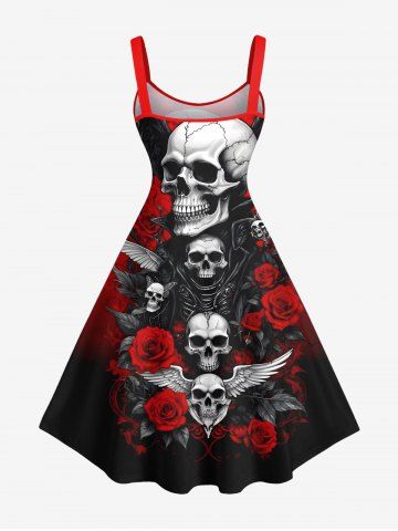 Halloween Skulls Wings Rose Flowers Butterfly Print Plus Size Matching Outfit For Couples - Red