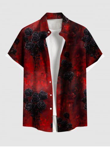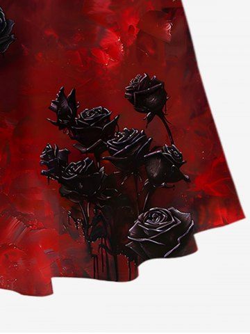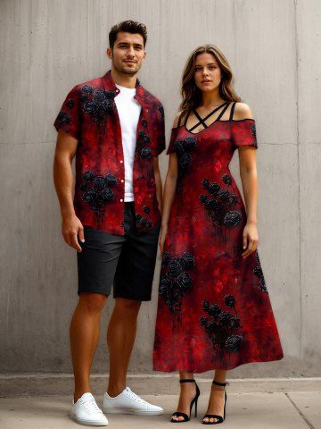 Halloween Tie Dye Ombre Rose Flower Print Plus Size Matching Outfit For Couples - Red