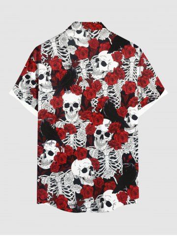 Rose Flower Skulls Skeleton Print Plus Size Matching Halloween Outfit For Couples - Red