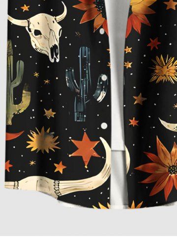 R*****r5Skull Flower Moon Cactus Print Western Cowboy Style Plus Size Matching Outfit For CouplesColor: BLACKTrue to size. Looks great. Will buy again from this company.