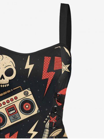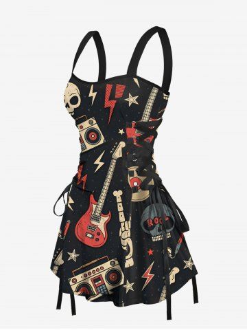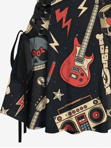 Couple Halloween Outfits > Halloween Skull Guitar Radio Print Rock and Roll Matching Outfit For Couples