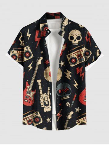 Halloween Skull Guitar Radio Print Rock and Roll Matching Outfit For Couples - Black