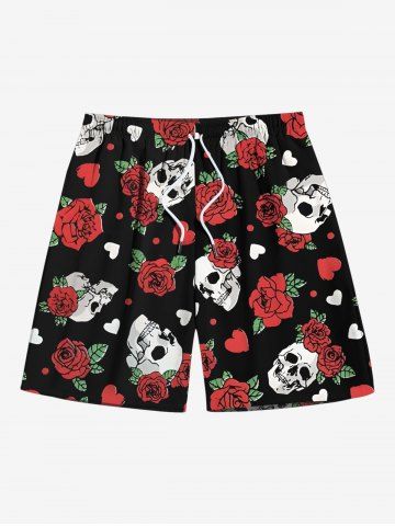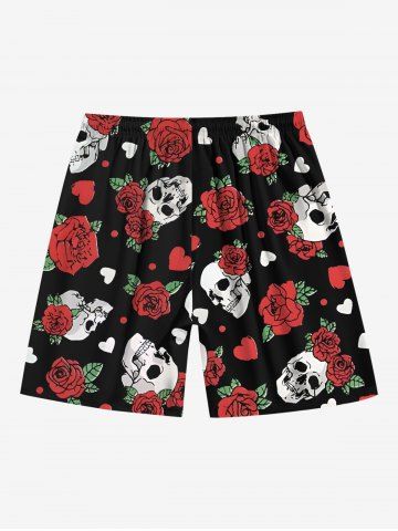 Skull Rose Flower Leaf Heart Print Plus Size Matching Outfit For Couples - Red