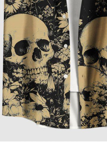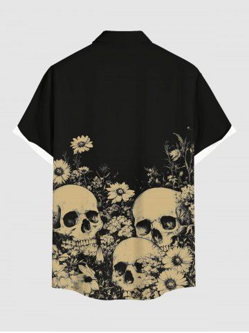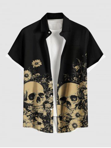 Skulls Daisy Flowers Print Plus Size Matching Hawaii Beach Outfit For Couples - Black
