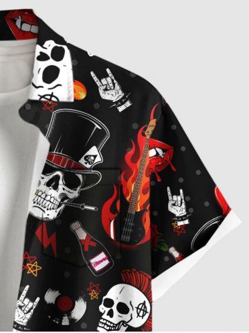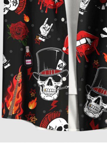 Skulls Fireflame Guitar Lips Rose Flower Print Plus Size Matching Outfit For Couples - Black