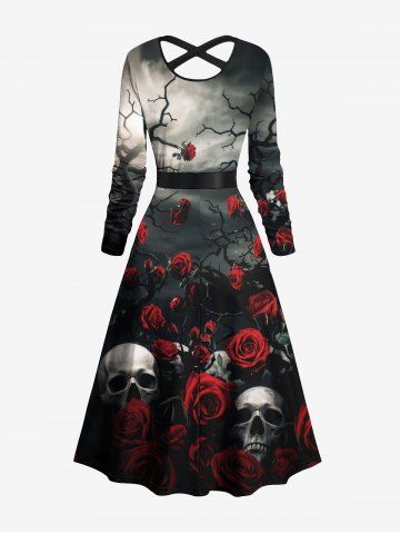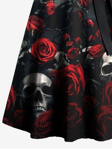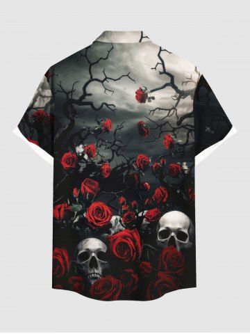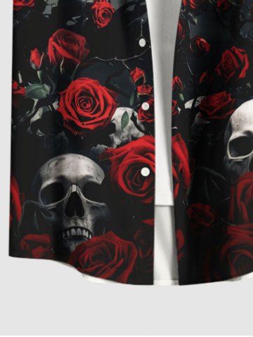 Skulls Rose Flower Ombre Print Plus Size Matching Hawaii Beach Outfit For Couples - Black