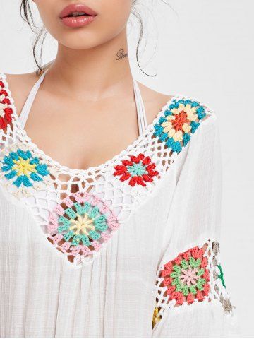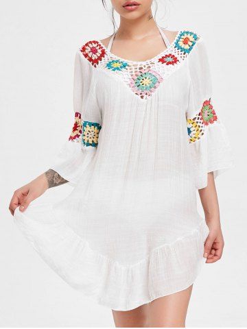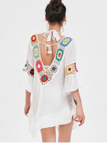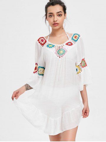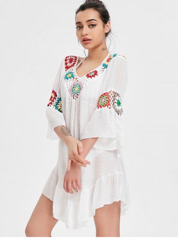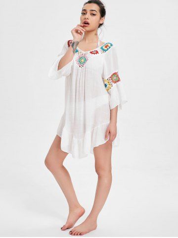 Crochet Panel Flounce Tunic Cover Up - White - One Size
