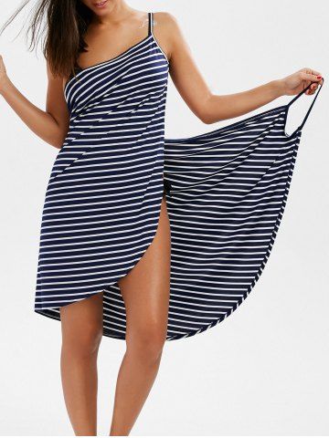 Pinstripe Open Back Cover-ups Dress - Deep Blue - M