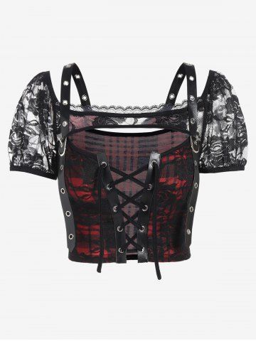 E*****r4Gothic Studs Harness Cropped Tank TopColor: BLACK Size: 3X | US 22-24Makes a great bathing suit top. I'm a bigger girl so it does tend to ride up some but I just throw a see-through cover on and it's super cute with a bit of badass with a black swimsuit skirt