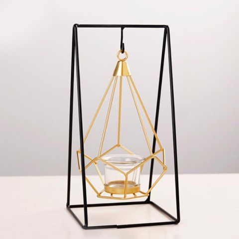 Geometric Wrought Home Candle Holder Decoration - Black - Swing Type