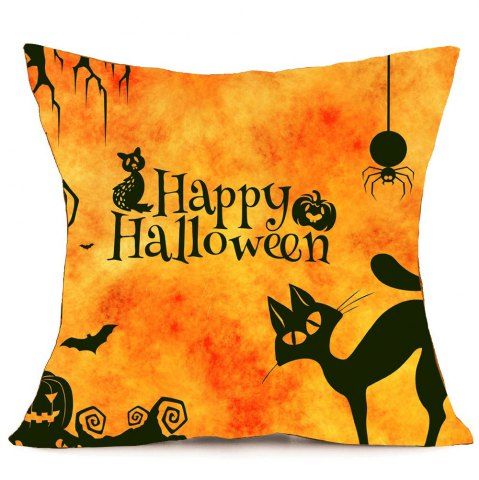 Halloween Cat Pattern Square Pillow Case - Orange - W18 Inch * L18 Inch