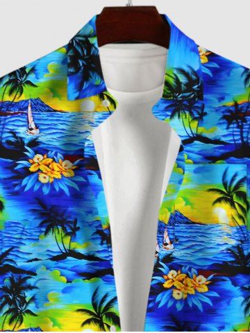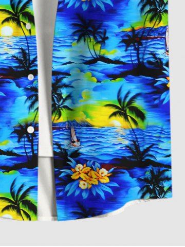 Coconut Tree Floral Sea Sun Print Hawaii Dog and Owner Matching Outfits - Sky Blue