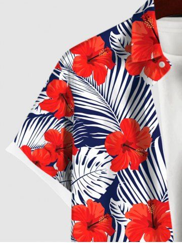 Red Hibiscus Flower Tropical Palm Leaf Print Hawaii Dog and Owner Matching Outfits - Red