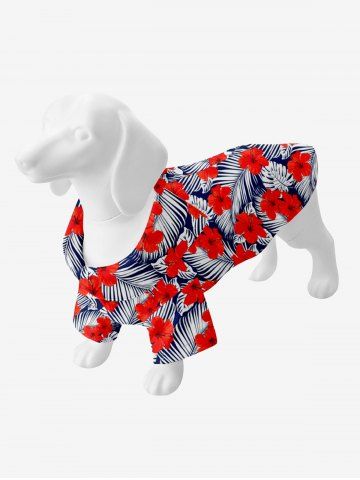Dog And Owner Matching Outfits > Red Hibiscus Flower Tropical Palm Leaf Print Hawaii Dog and Owner Matching Outfits