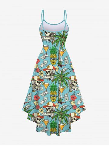 Skull Coconut Tree Juice Pineapple Floral Currency Print Plus Size Matching Hawaii Beach Outfit For Couples