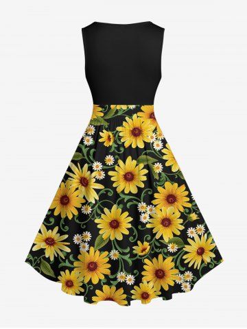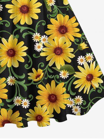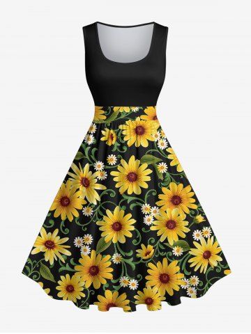 a*****y5Plus Size Sunflower Daisy Leaf Print 1950s Vintage DressColor: BLACK Size: MI purchased a couple of this style dress. They are very comfortable. The material is stretchy, light weight, and seems like it won't wrinkle easily.