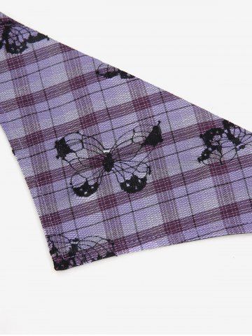 Pet's Butterfly Plaid Print Push Buckle Waterproof Bandana Bibs - Purple - 2xl