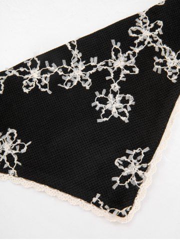 Pet's Floral Jacquard Lace Trim Textured Bandana Bibs - Black - S