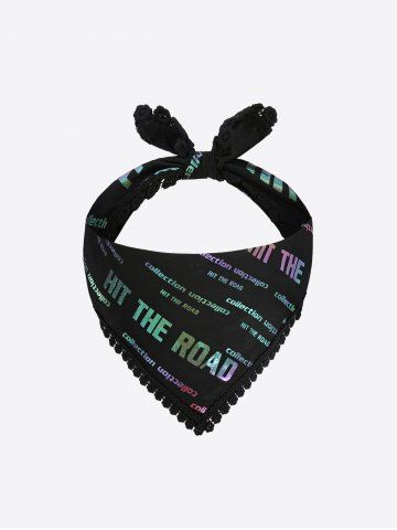Pet's Glitter Ombre Letters Print Lace Trim Tied Bandana Bibs - Black - S