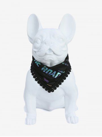 Pet's Glitter Ombre Letters Print Lace Trim Tied Bandana Bibs - Black - L
