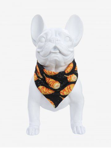 Pet's Hot Dog Print Pointelle Hollow Out Bandana Bibs - Black - L