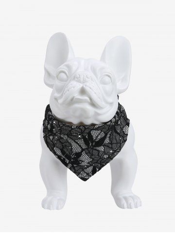 Pet's Lace Floral Push Buckle Waterproof Bandana Bibs - Black - L