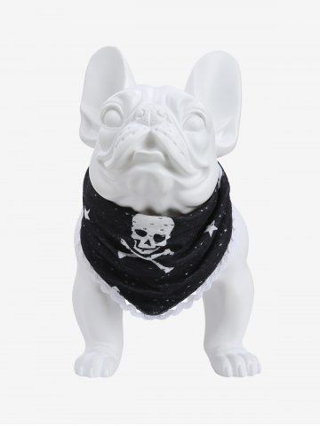 Pet's Skull Stars Printed Hollow Out Pointelle Lettuce Trim Bandana Bibs - Black - S