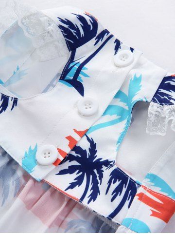 Pet's Coconut Tree Summer Letters Print Lace Trim Hawaii Top - White - S