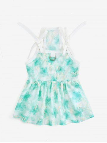 Dog Dresses > Pet's Flower Leaf Print Floral Embroidery Tied Shirt