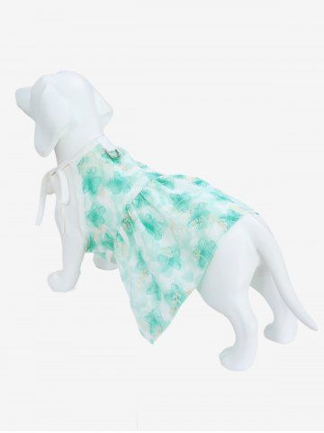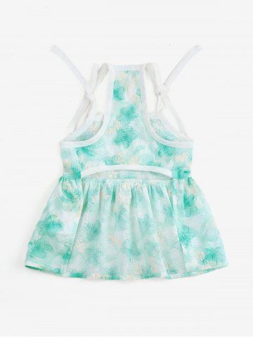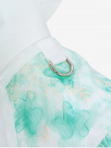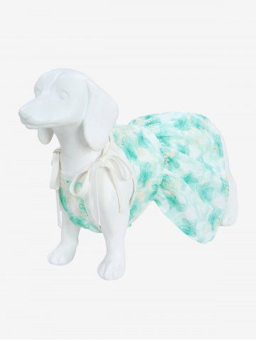 Pet's Flower Leaf Print Floral Embroidery Tied Shirt - Light Green - 2xl