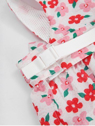 Pet's Flowers Print Bowknot Lace Trim Dress With Leash - Red - Xl