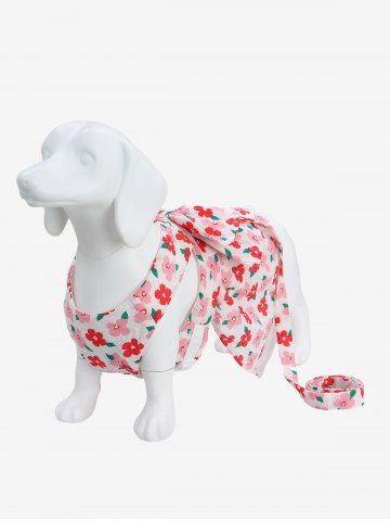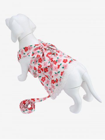 Pet's Flowers Print Bowknot Lace Trim Dress With Leash - Red - 2xl