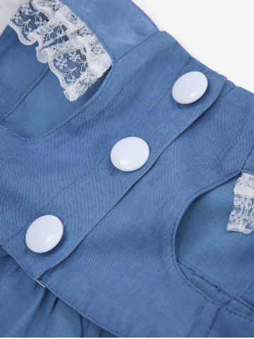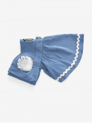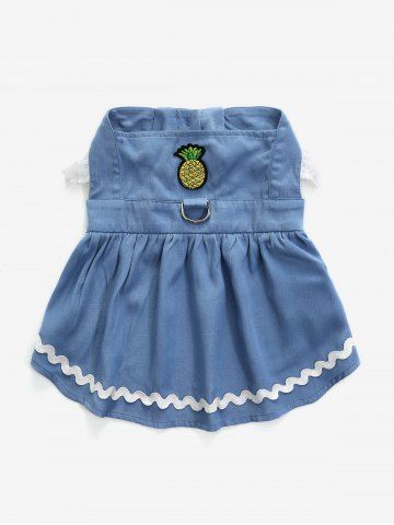 Pet's Pineapple Lace Trim Appliques Buttons Dress - Blue - M